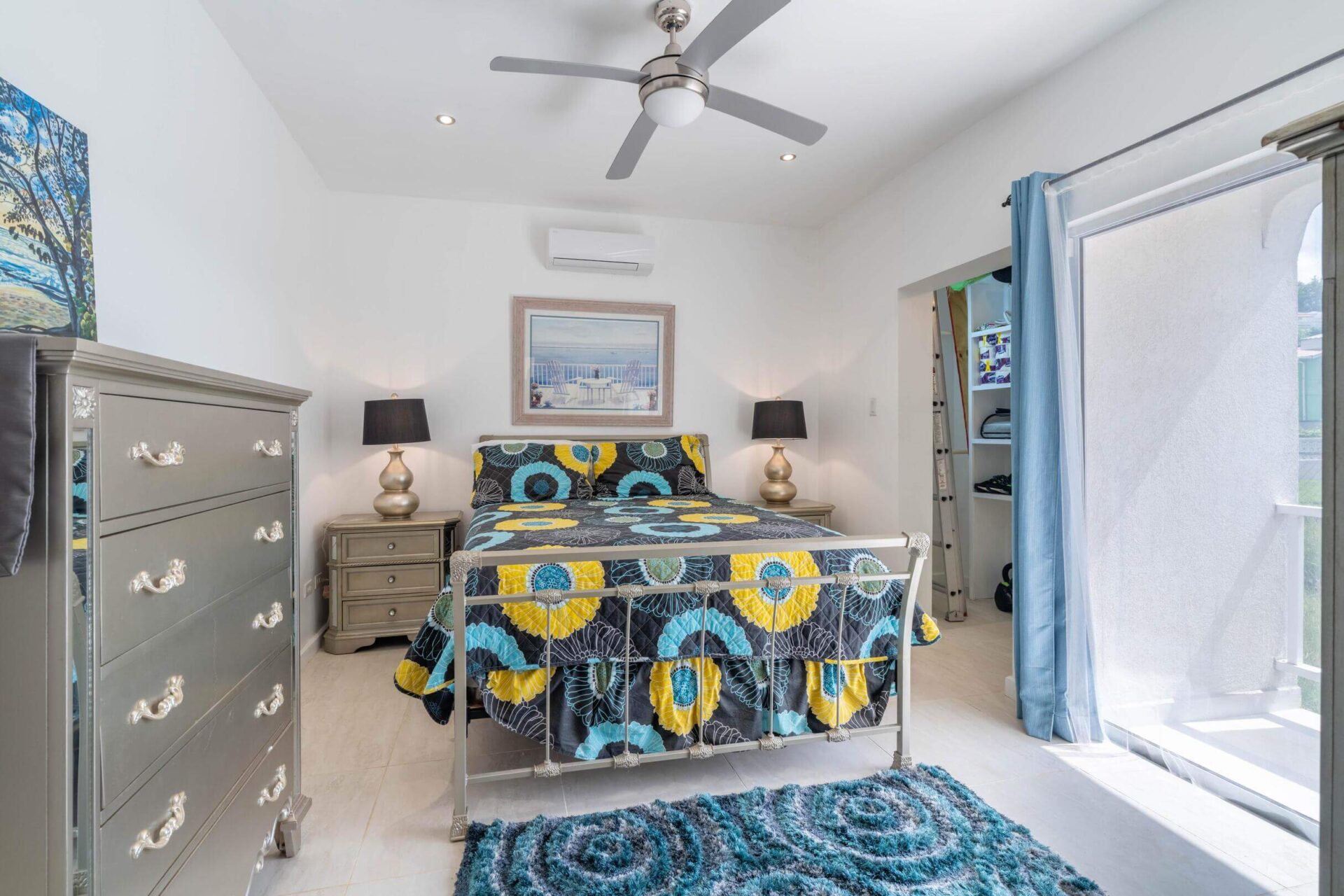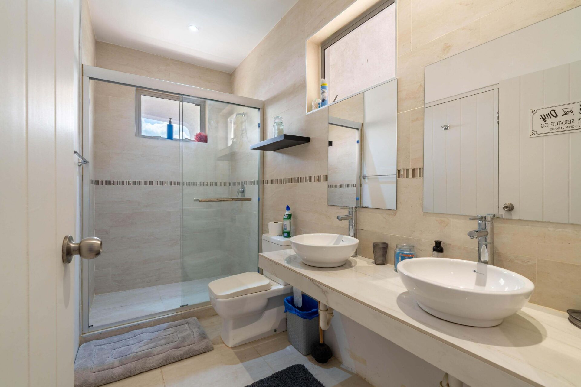 Two of the four bedrooms are generous suites with walk-in closets. En-suite bathrooms feature granite countertops and glass-enclosed showers. Several bedrooms open onto balconies that capture ocean and tropical views.
