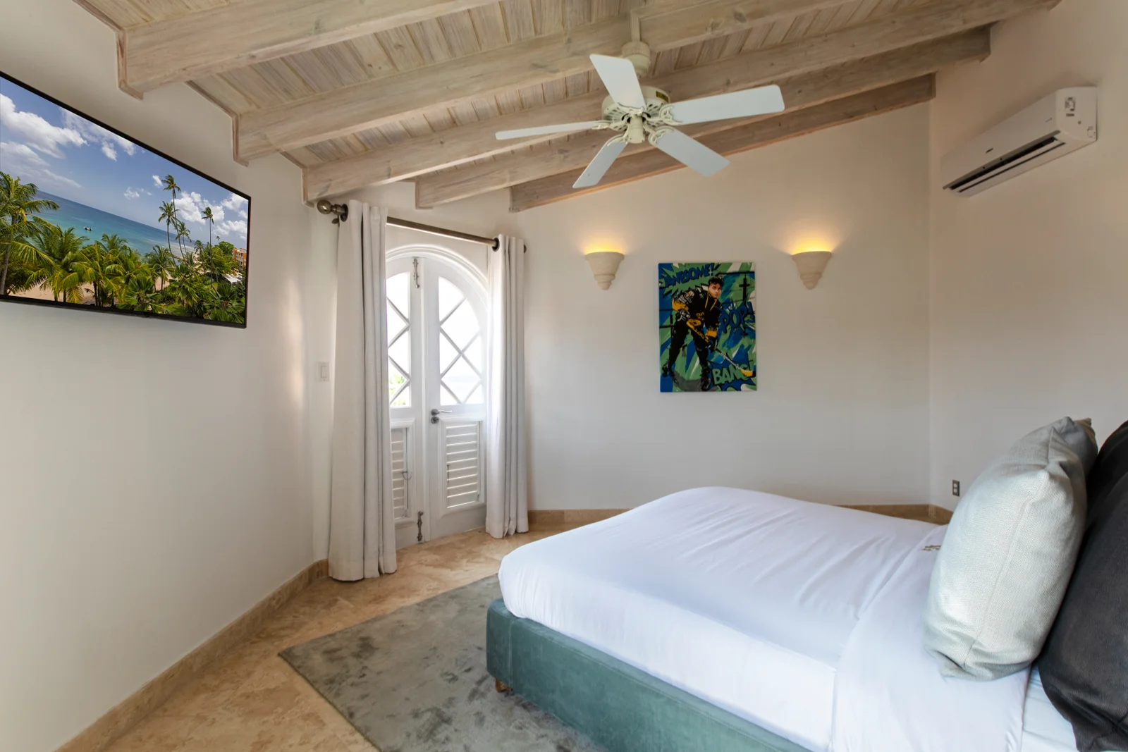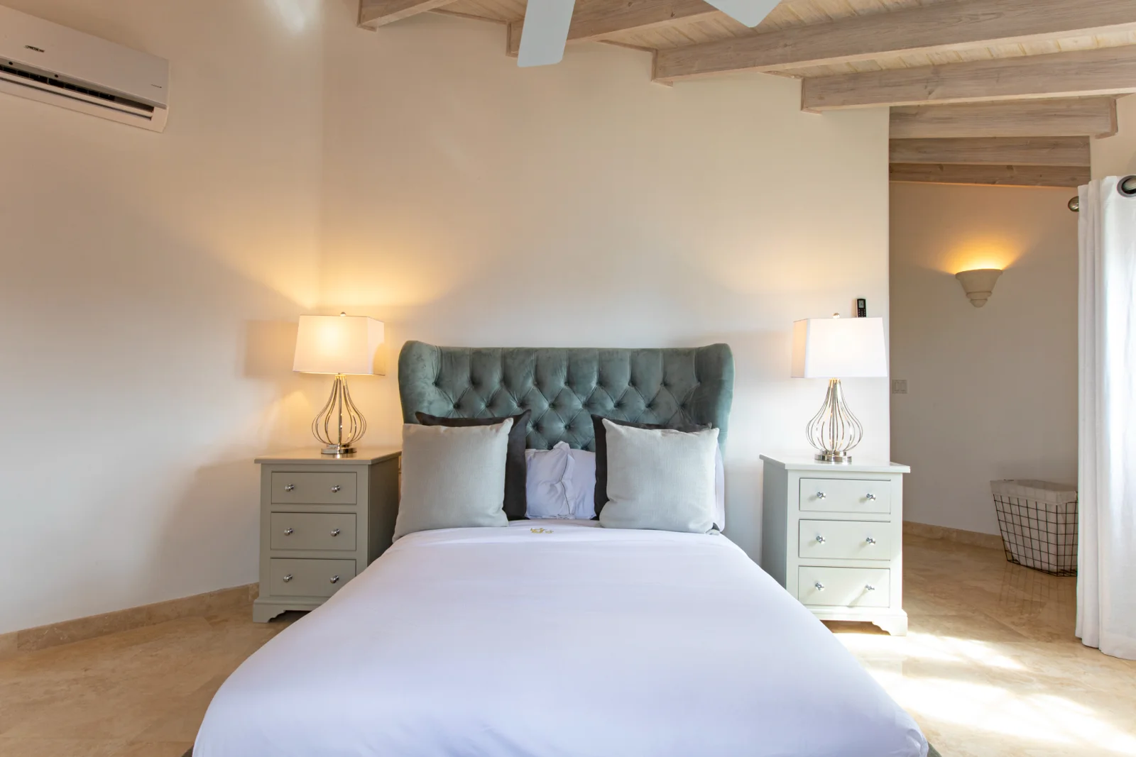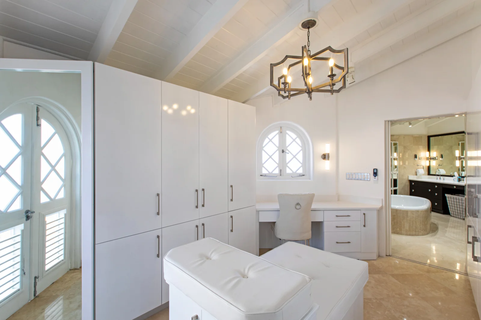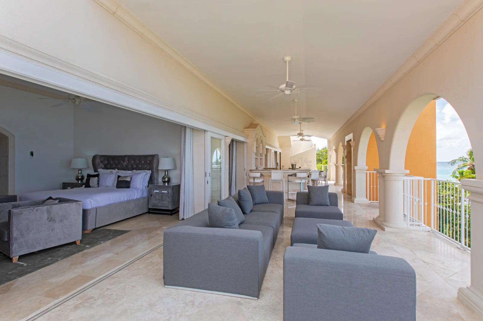 Upstairs, five generous en-suite bedrooms create separation from the main entertaining areas. Several suites open onto private balconies with elevated sea views and cooling breezes. There is also a bespoke office, carefully outfitted for owners or guests who need a quiet, refined place to work.