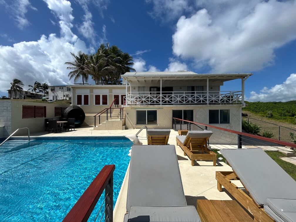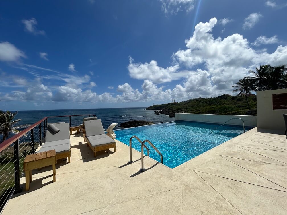 The heart of the home is the open-plan living and dining area. It is generous in scale and designed to make the most of the setting. A stylish mini-bar anchors the space, while wide French doors pull your eye straight out to sea. Open them, and the house flows naturally onto the oceanfront terrace, infinity-edge pool, and sun-soaked patio. This is where mornings start slowly and evenings stretch on, with uninterrupted views of the Atlantic, the historic lighthouse, and The Crane and East Resort in the distance.