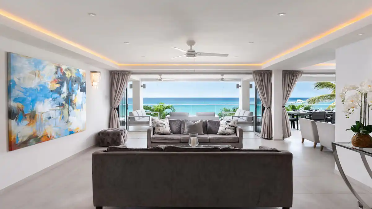A rare five-bedroom beachfront villa on Paynes Bay offering direct sea access and prime Platinum Coast living.
