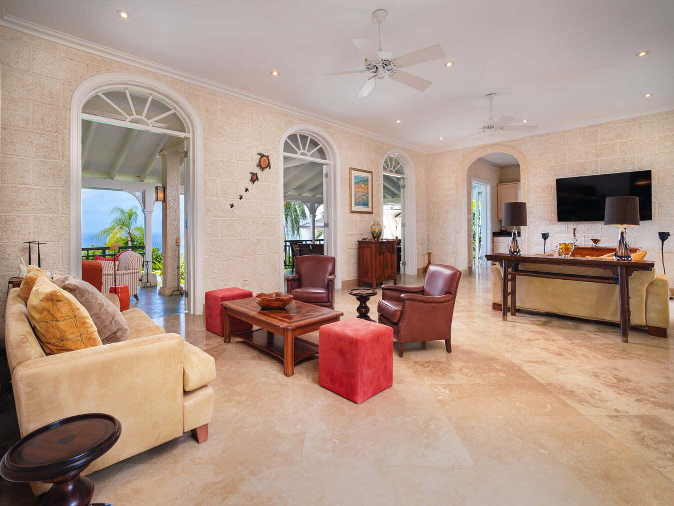 Tortuga sits on one of Turtleback Ridge’s prime ridgefront sites, and properties like this rarely change hands. You feel it the moment you step through the courtyard—quiet, private, surrounded by mature foliage—and then the view opens up and stops you in your tracks. The Caribbean Sea stretches out before you, and because of the elevation, the breezes roll through all day.