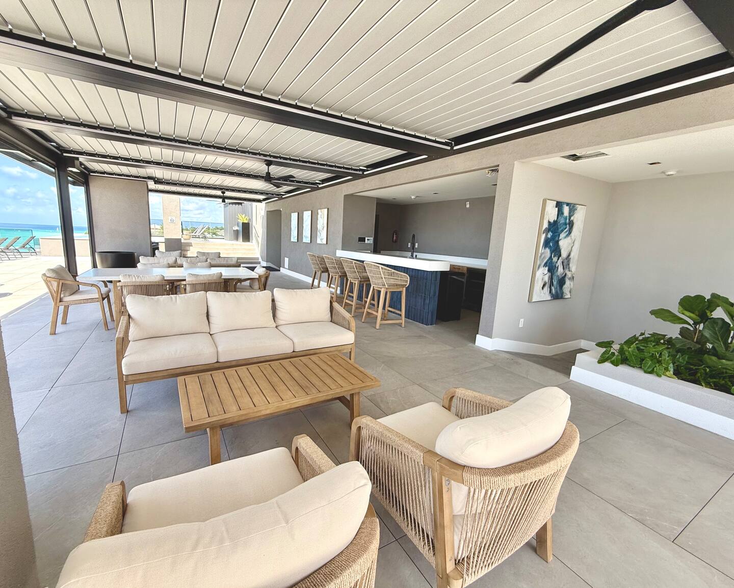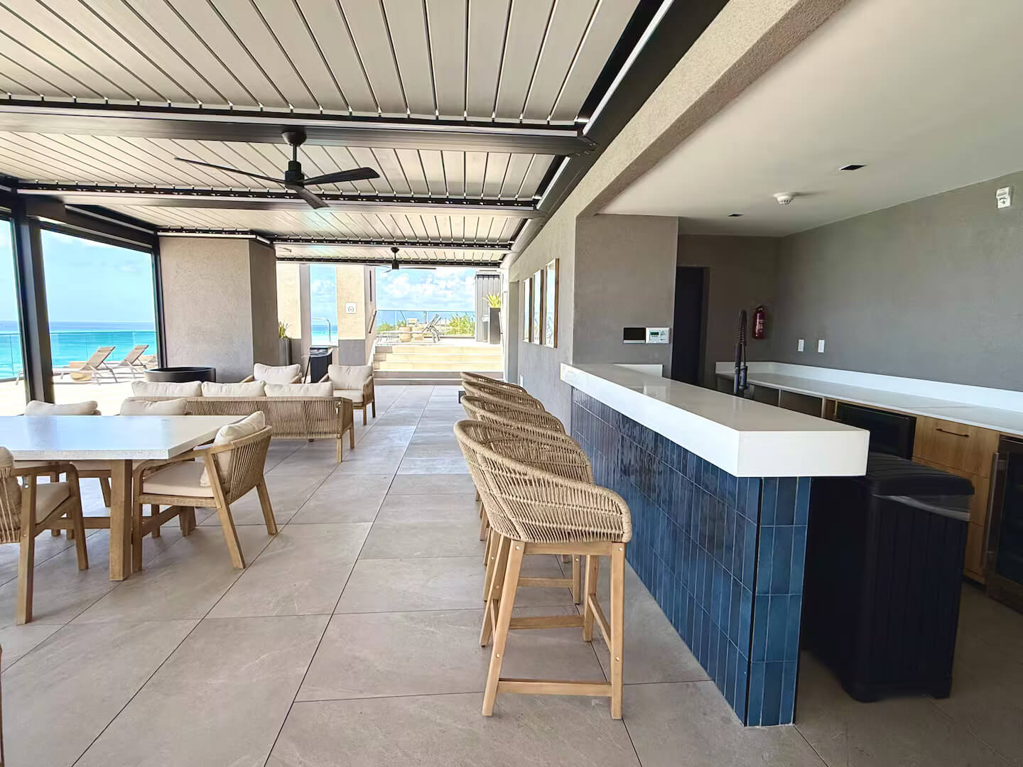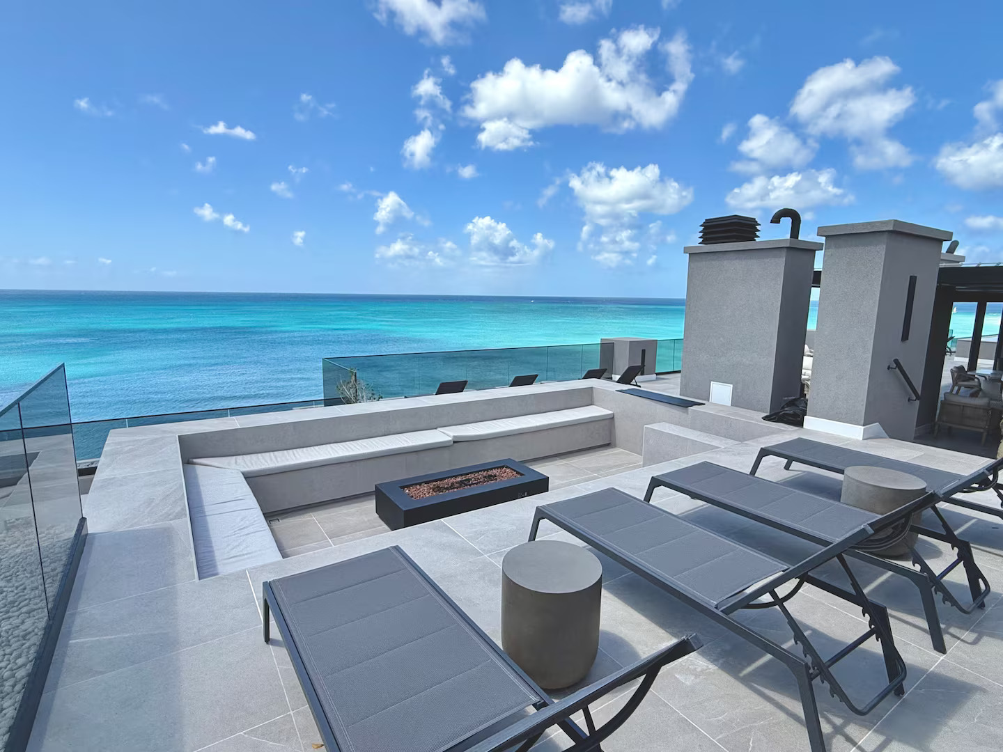 The communal rooftop sanctuary includes an infinity-edge pool overlooking the beach, plush lounge areas, a stylish fire pit, and panoramic 180-degree sea views that turn every sunset into a private event. There’s space to entertain, space to unwind, and space to just breathe.