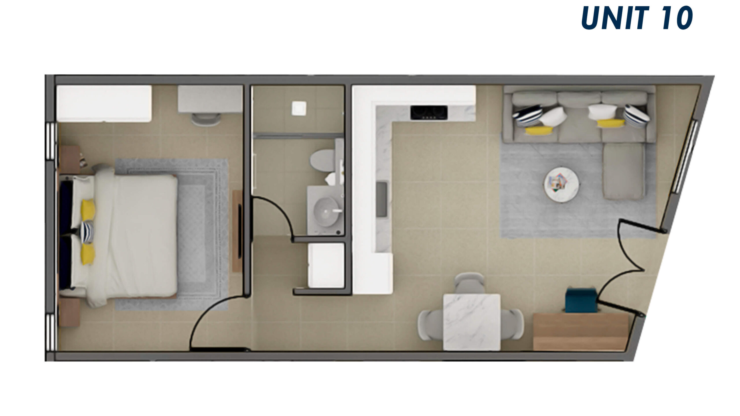 One bedroom | One bathroom | 450 sq. ft. ground-floor unit | Building 2 | Fully furnished and turnkey