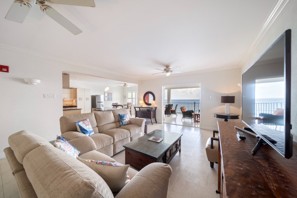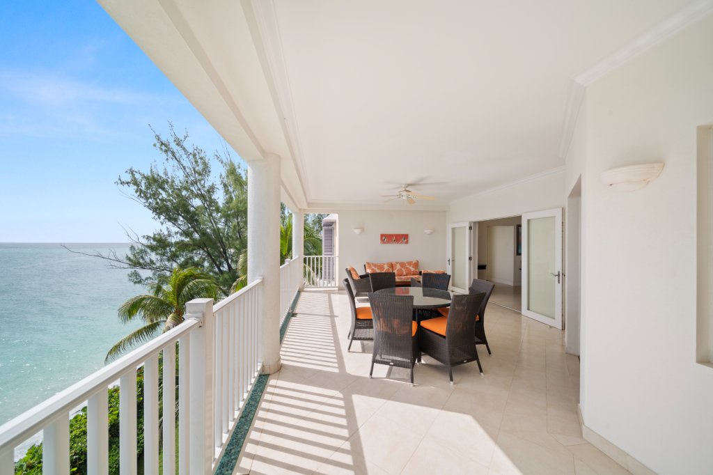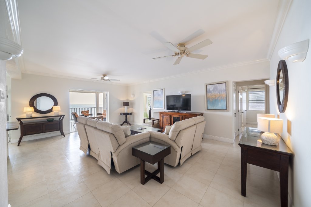 A spacious, fully furnished three-bedroom beachfront apartment at Sandy Hook, offering uninterrupted sea views and direct beach access on Barbados’ South Coast.