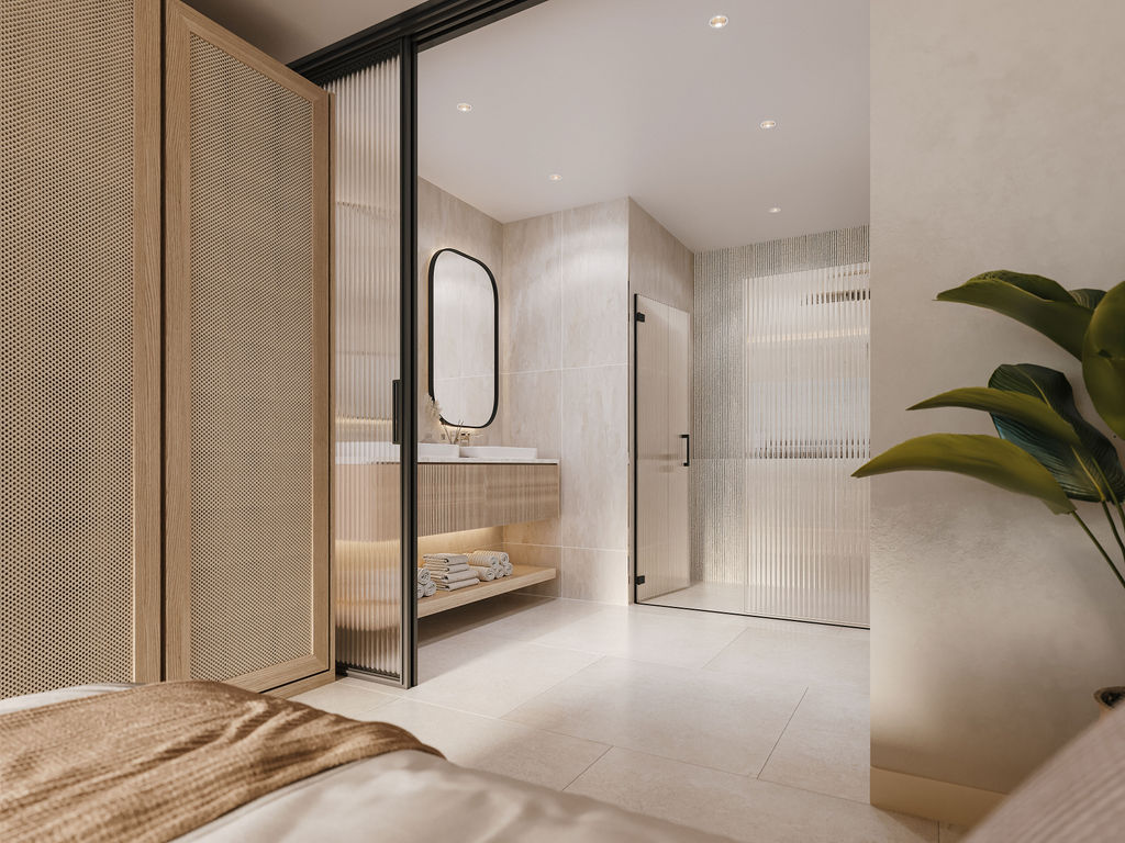 These homes boast sweeping sea views through floor-to-ceiling glass. Expansive open-plan living spaces flow to private terraces designed for dining, lounging, and watching the sunset. Every bedroom is ensuite, with the primary suite enjoying direct ocean views. - Type Two