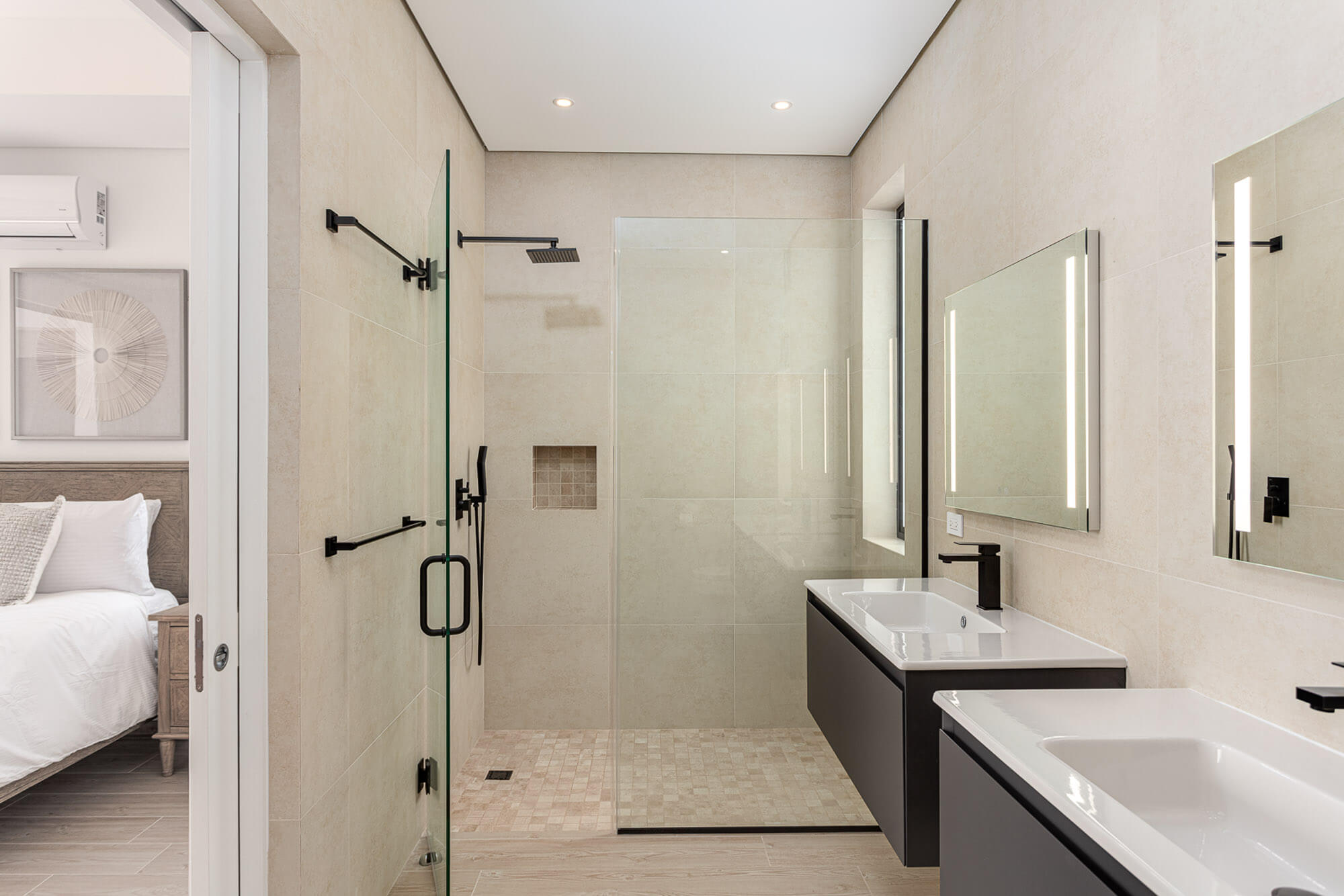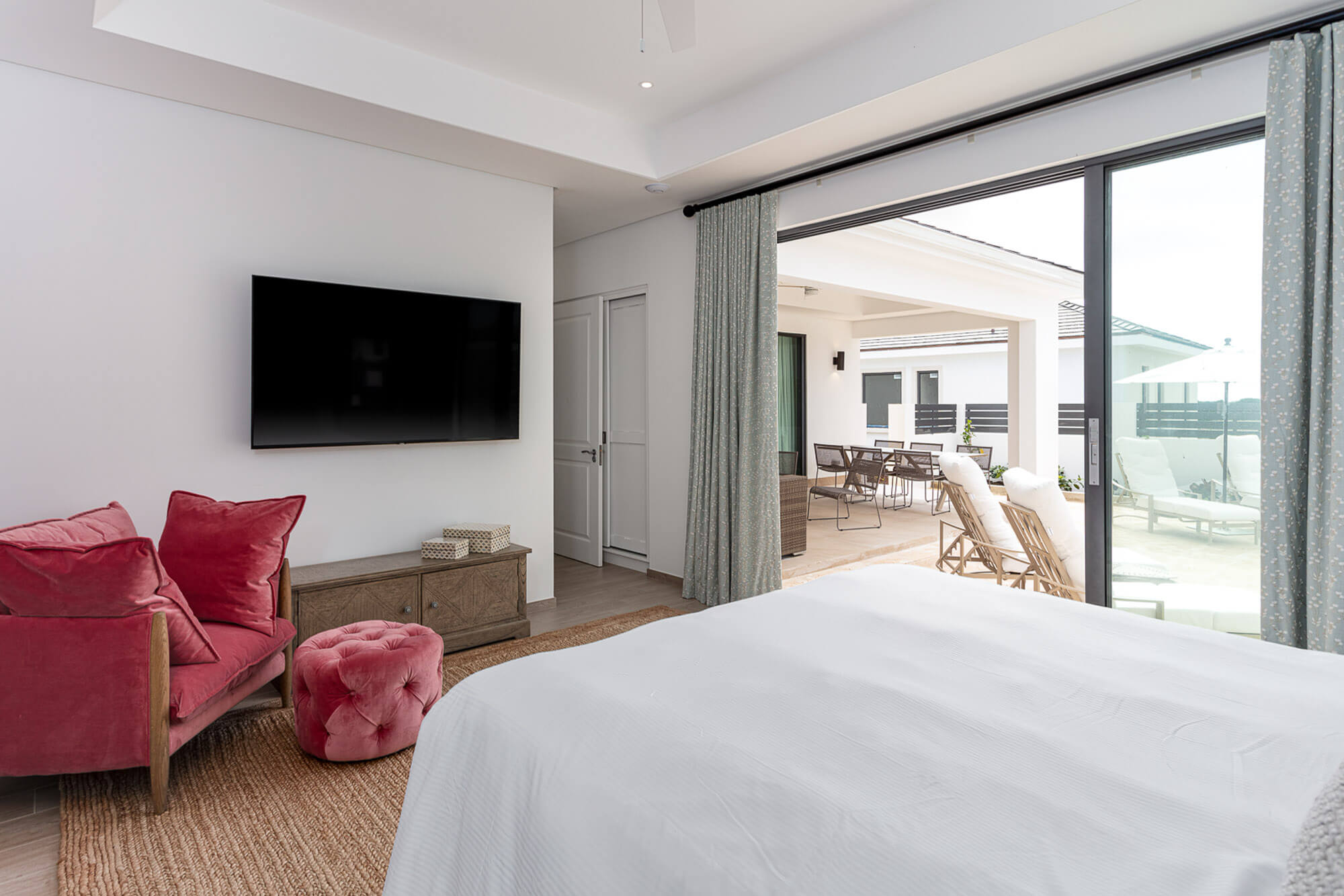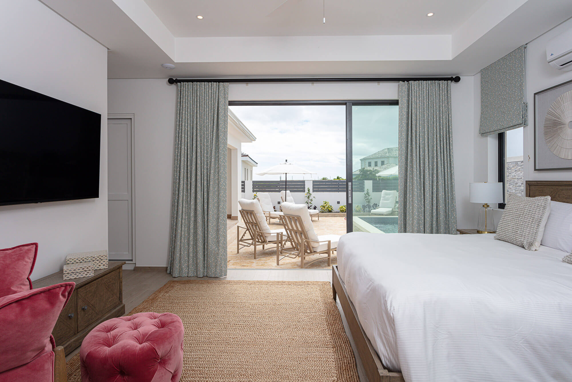 The primary bedroom suite is especially well considered, offering not just pool access but also a tranquil, tucked-away layout with plenty of space and privacy—ideal for winding down after a day on the course or the beach.