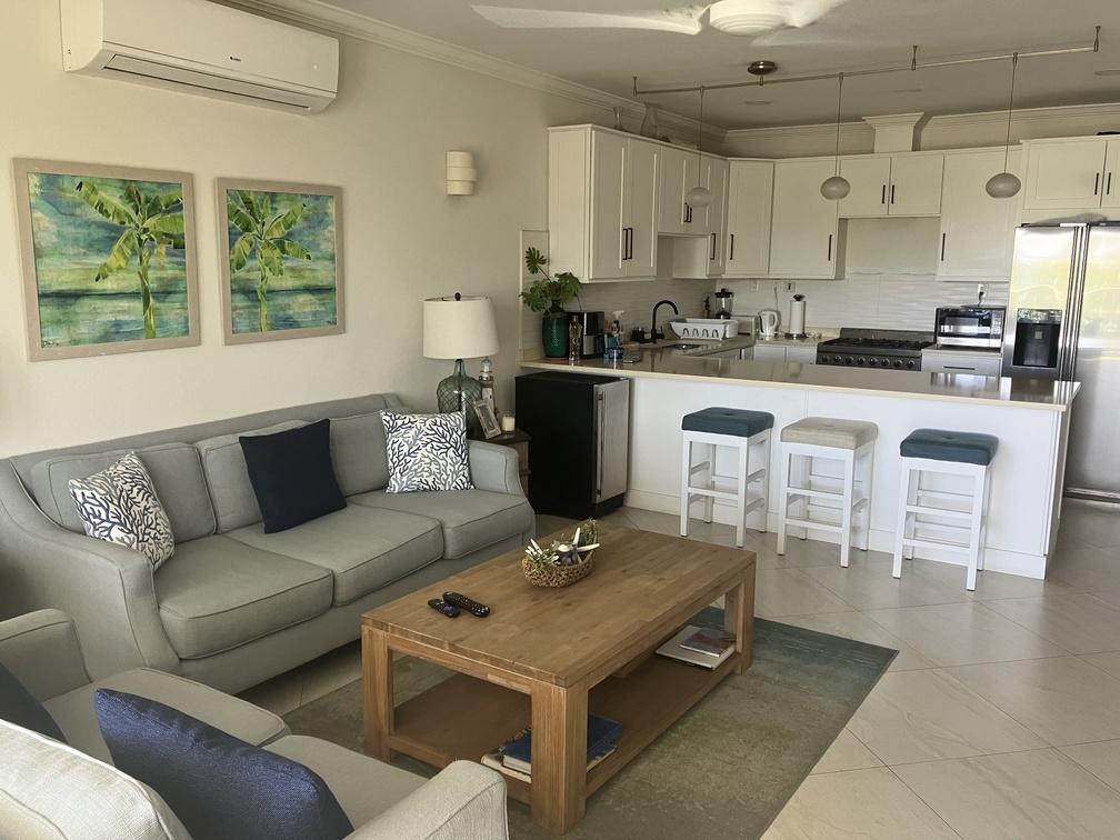 This is an end unitn of just eight residences, which means more light, more breeze, and more privacy. Eastern windows flood the interiors with natural light while drawing in the cooling trade winds—something you’ll immediately appreciate when you open the doors to the expansive patio and take in the Caribbean Sea, framed by swaying palms.