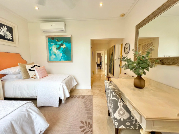 Single-level 3-bedroom villa with pool opposite Mullins Beach, sold fully furnished and move-in ready.
