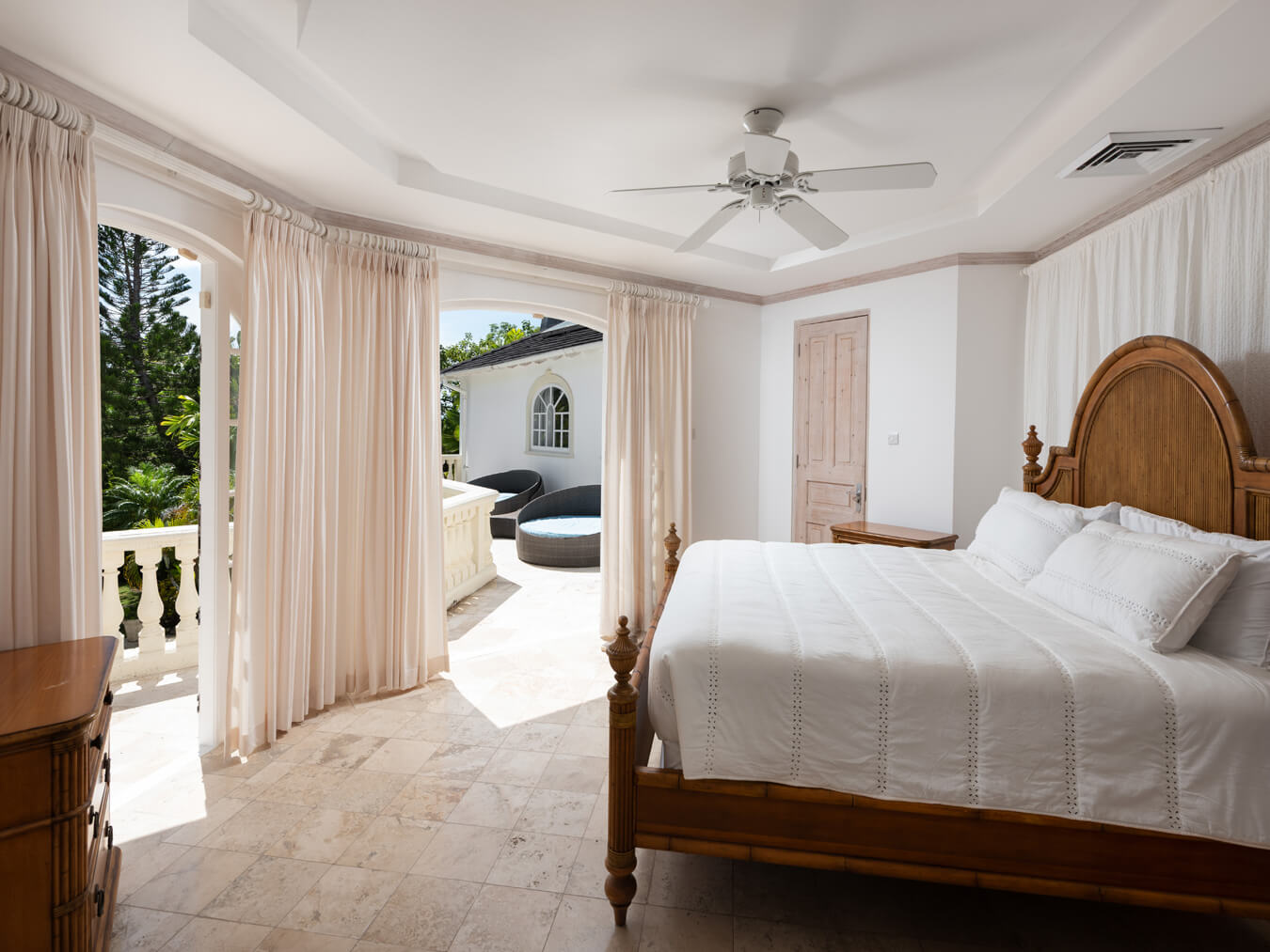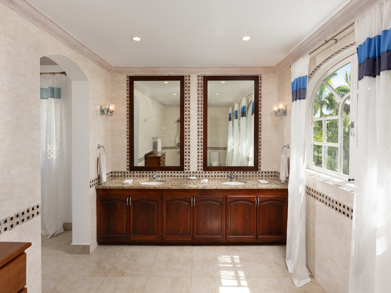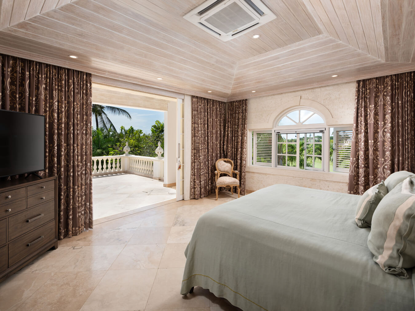 Ascend the staircase to the stylish mezzanine level, where you’ll find a study, two additional guest bedrooms and the luxurious master suite. The master bedroom boasts a large dressing room/lounge area and opens onto a balcony with captivating views of the fairway and the Caribbean Sea. One of the guest bedrooms also leads onto the large balcony.