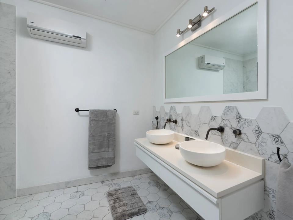 Melograno is also exceptionally well-suited for modern living. Cat-5 cabling runs to every room, Wi-Fi hubs are positioned throughout the house, and the entire villa is air-conditioned. TGM Dreamliner inverter units serve the main living areas, while large Big Ass Haiku 84-inch fans in the family room, sitting room, and patio keep air flowing naturally. It works equally well as a full-time residence, a lock-up-and-leave home, or a remote-working base in the sun.