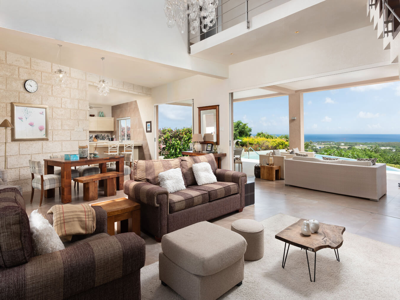 Villa Ravello is a four-bedroom ridgefront villa in St Peter with panoramic sea views, a saltwater infinity pool, and a detached guest cottage.