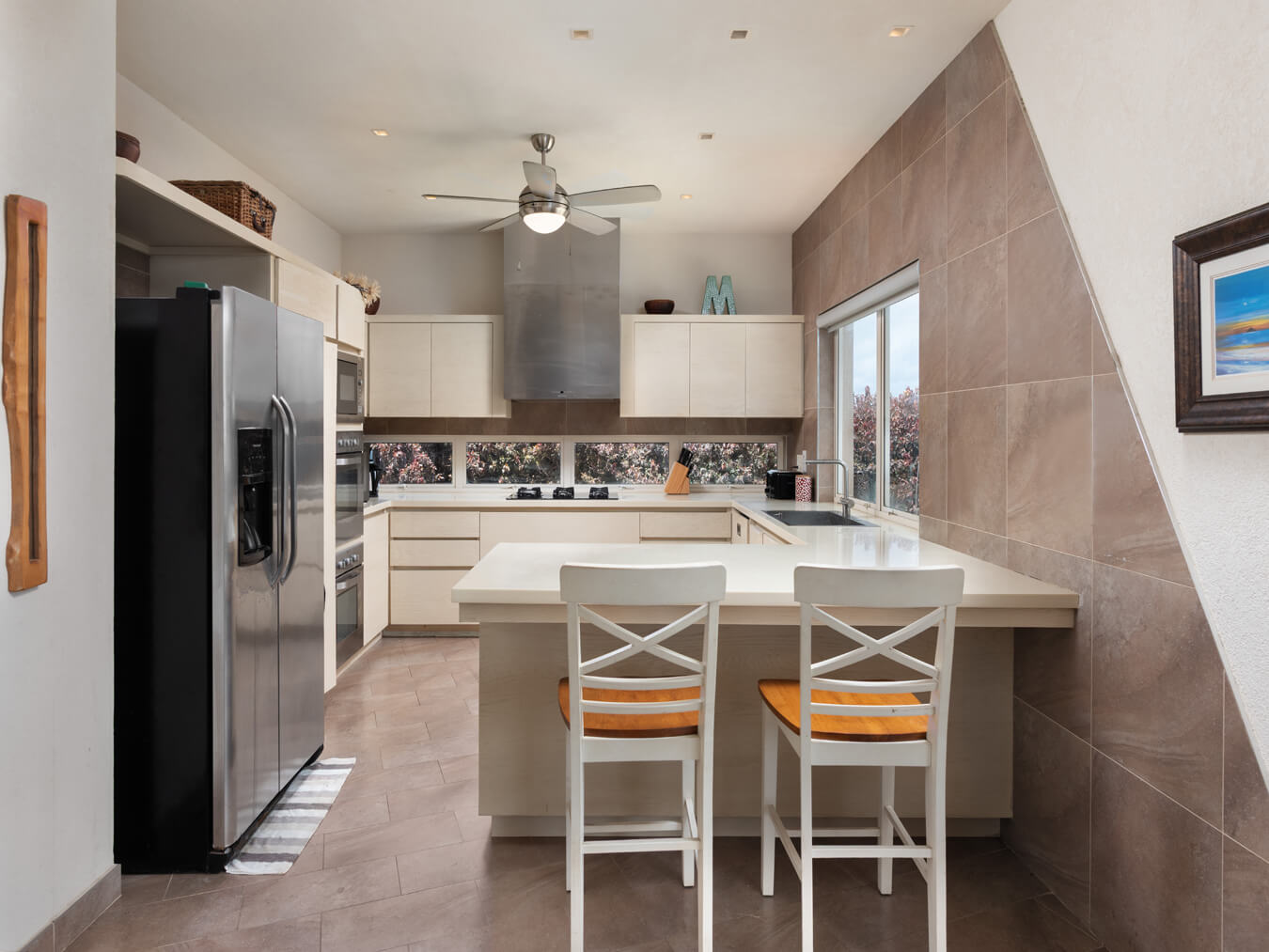 Set on 27,000 sq. ft. of ridgefront land and offering 4,300 sq. ft. of living space, including a separate one-bedroom cottage, Villa Ravello delivers both scale and style. The grounds are beautifully landscaped with tropical blooms and supported by a rainwater-fed irrigation system, ensuring year-round greenery with little effort.