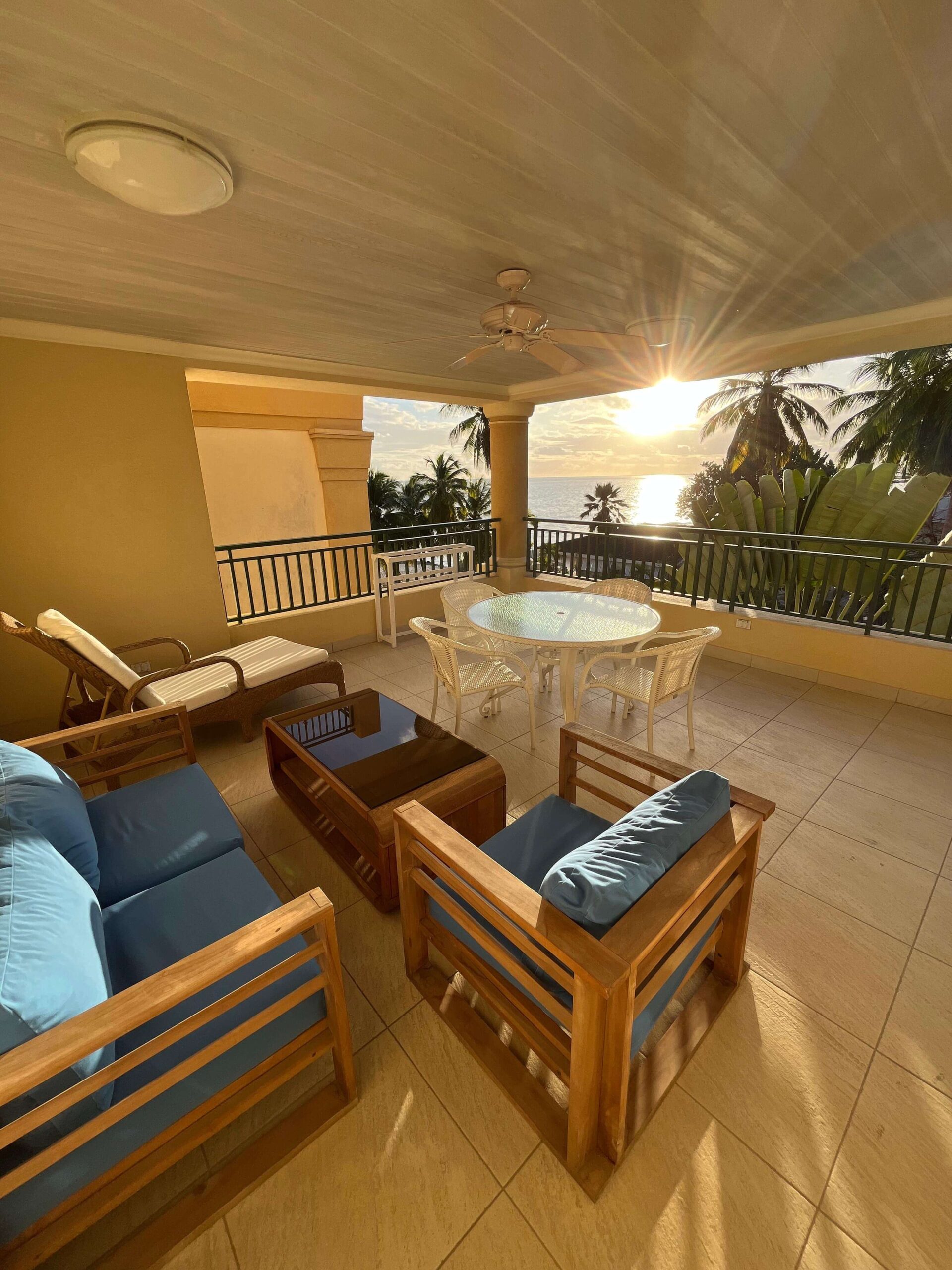 Inside, the 1,500 sq. ft. of space feels bright, airy, and instantly welcoming. The open-plan layout flows from the fully equipped kitchen to a comfortable living and dining area that opens out to a large covered terrace. From here, you’ll spend your mornings watching the waves and your evenings catching fiery Caribbean sunsets with a drink in hand.